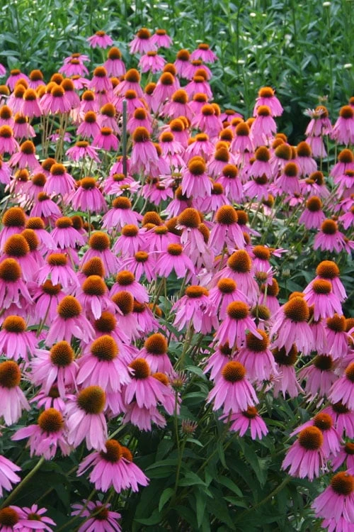 Kim’s Knee High Coneflower is very easy to grow. It is a highly adaptable plant that is tolerant of drought, heat, humidity and poor soil. It will grow in most any average soil that is moist to somewhat dry and well-drained. It flowers best in full sun but will also do well and bloom in part shade. We suggest a minimum of 5 hours of direct sunlight per day. Spent flowers can be removed through the long bloom season. That said, spent flowers/seed heads can be left on the plant for winter interest and to feed the birds.